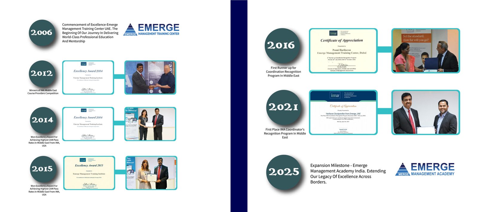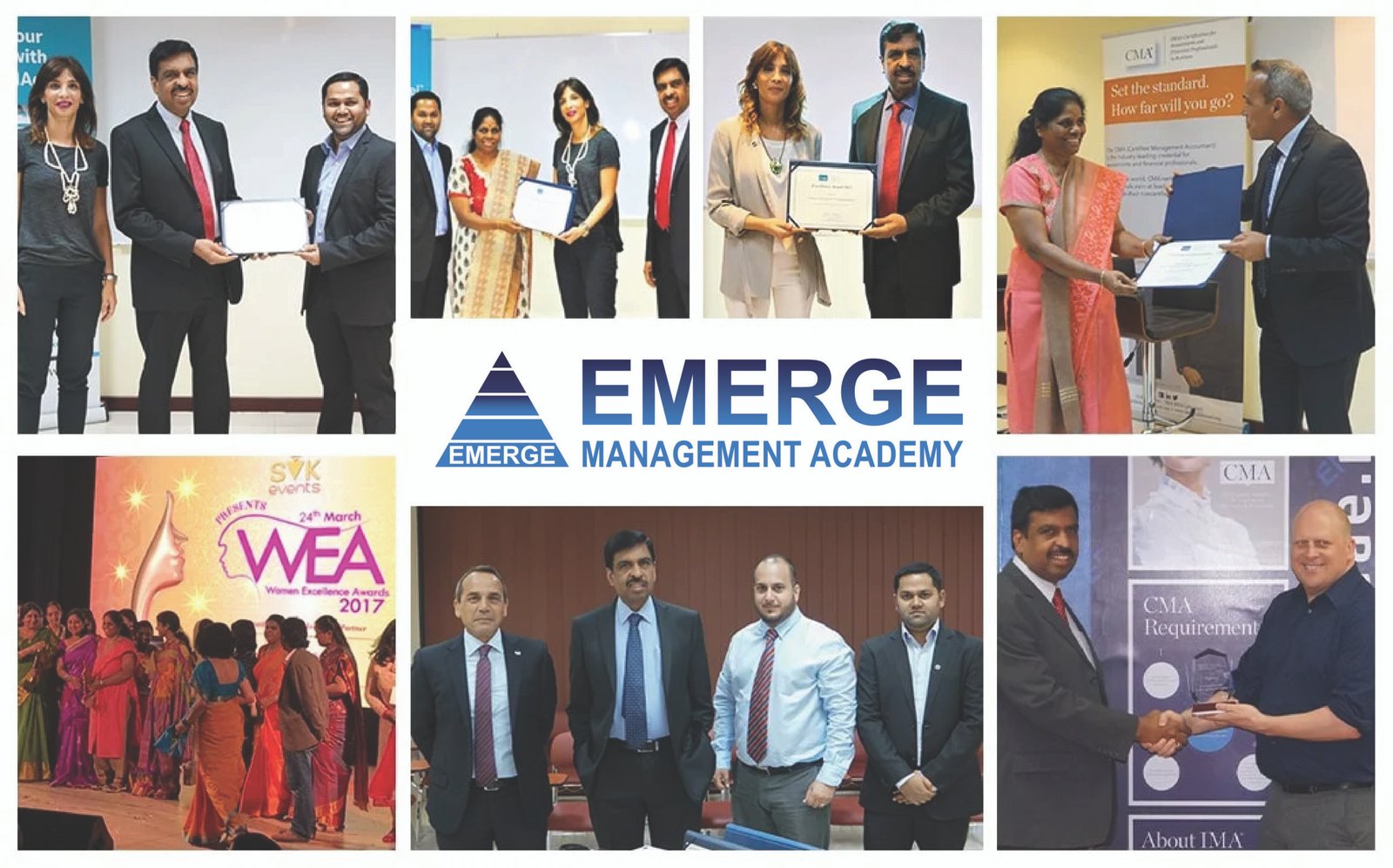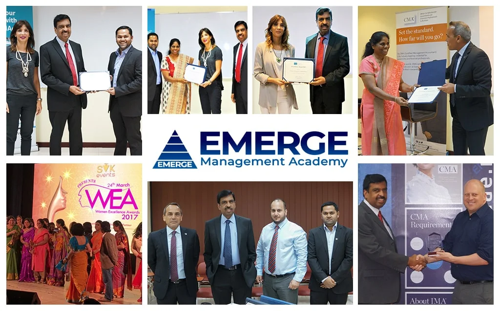 Founded in 2006, Emerge Management Training Center is approved by the Knowledge and Human Development Authority (KHDA), Government of Dubai, UAE, and recognized as a Silver CMA Course Provider by IMA (USA). The academy has earned multiple IMA Excellency Awards for top pass rates and the Best Administrator Award. We have produced over 800+ professionals from 65+ nationalities through 300+ batches.