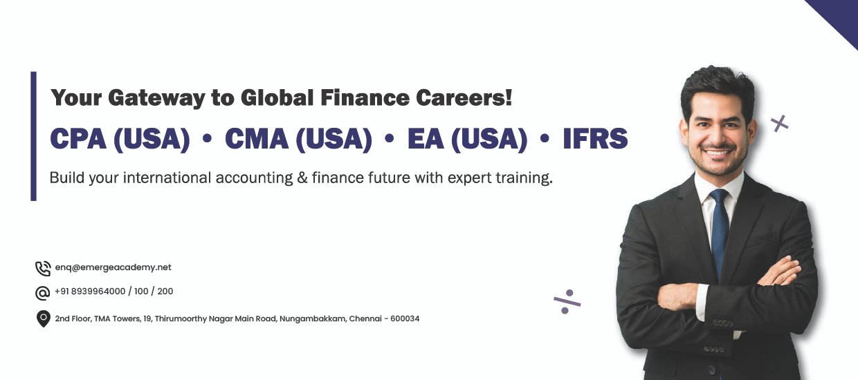 Emerge aims to provide extensive coaching for international & Indian courses like CPA (USA), CMA(USA), EA (USA), ACCA (UK), IFRS (USA & UK), CA (India), etc. through online as well as in-person classes, with the objective of empowering our students with the latest trends and techniques of financial engineering, required to survive and rule in the global job market. -